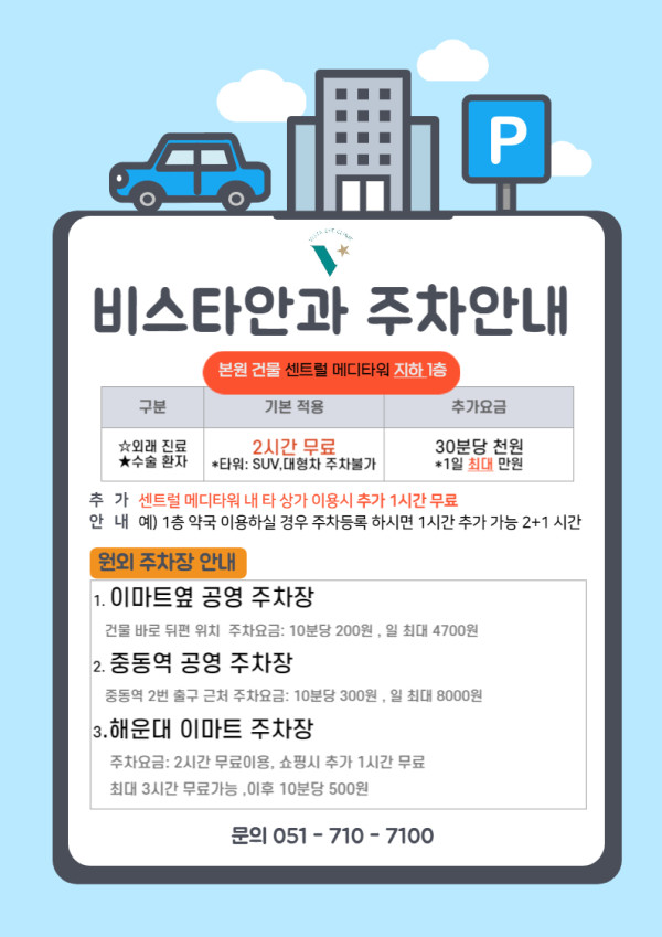 본원에서는 내원고객에게 2시간 무료 주차를 제공하고 있습니다